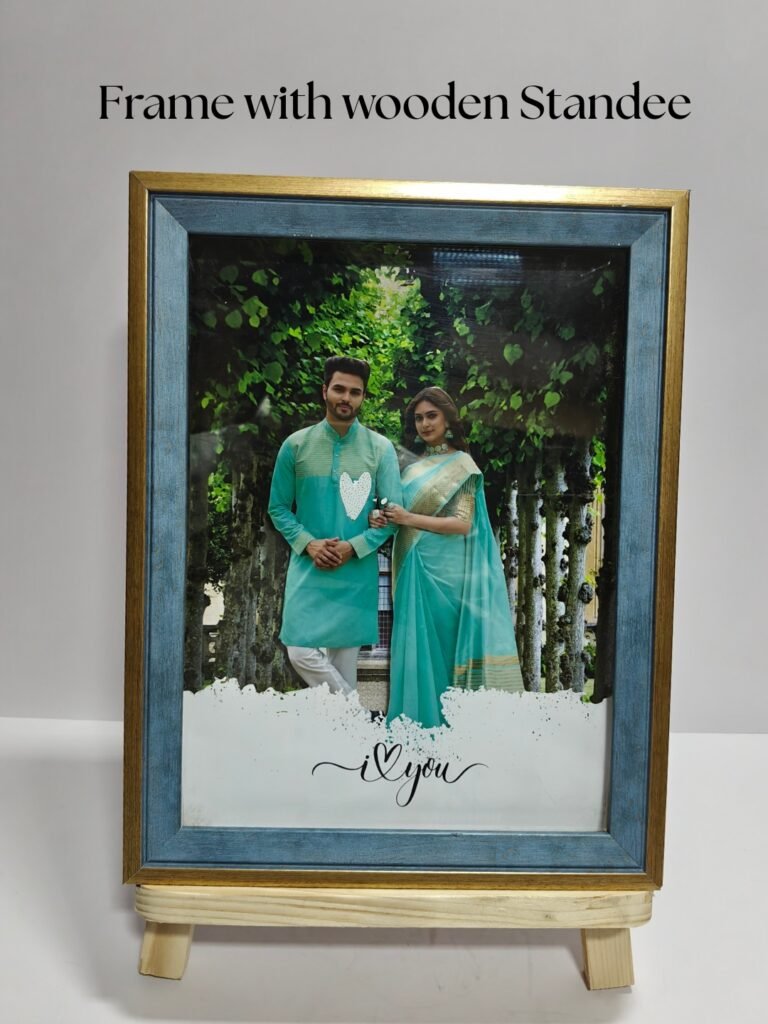 Elegant Wooden Finish – Durable wood frame with a stylish blue and golden touch, suitable for tabletop or wall decor.